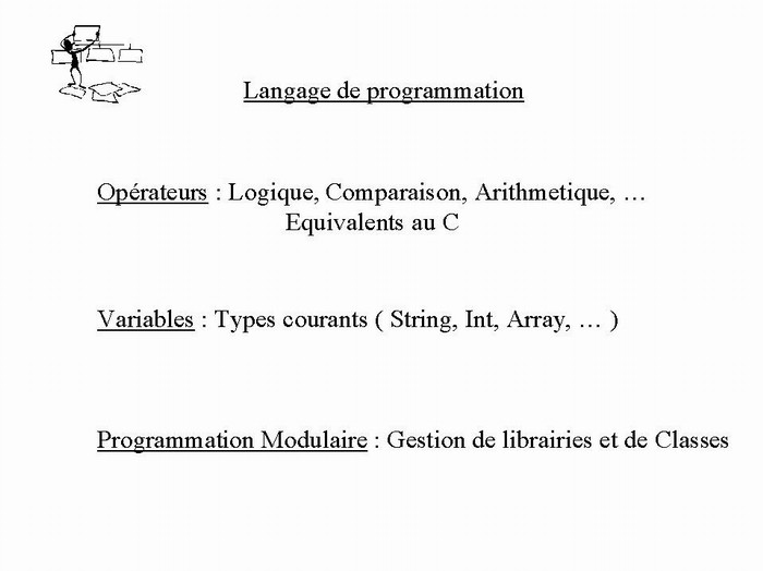 Comme on le voit sur ce transparent, PHP est un langage évolué comparable à du C simplifié à cause des types moins nombreux et des fonctionnalités systême, bien etendu, non présentes.