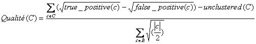 true_positive(Ci) = nombre de paires de documents dans le cluster Ci qui apparaissent aussi ensemble dans un cluster de la classification de référence
