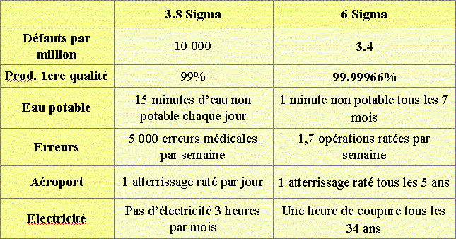 Imaginons à présent que nous appliquions les indicateurs du Six Sigma dans la vie courante. Nous obtiendrions le tableau suivant :