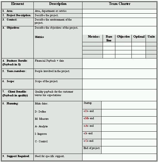 Une fois le problème clairement défini, on peut remplir la charte d'équipe ou Project Charter.