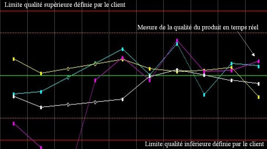 Le SPC permet de suivre en temps réel la qualité des produits fabriqués. Si deux points mesurant la qualité et se suivant forment une droite sortant des spécifications du client, alors une action corrective est émise en production immédiatement afin de revenir à une qualité répondant aux demandes du client.
