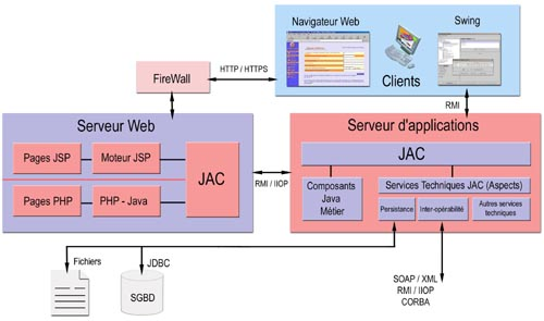 JAC propose un ensemble de couches de communication: RMI, SOAP/XML et Corba/IIOP,