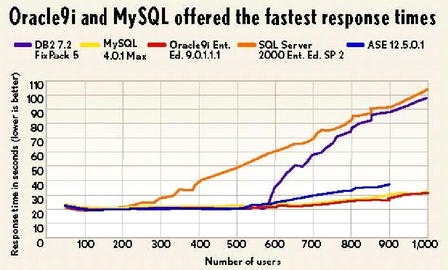 temps de réponse de différent SGBD concurrents en fonction du nombre
