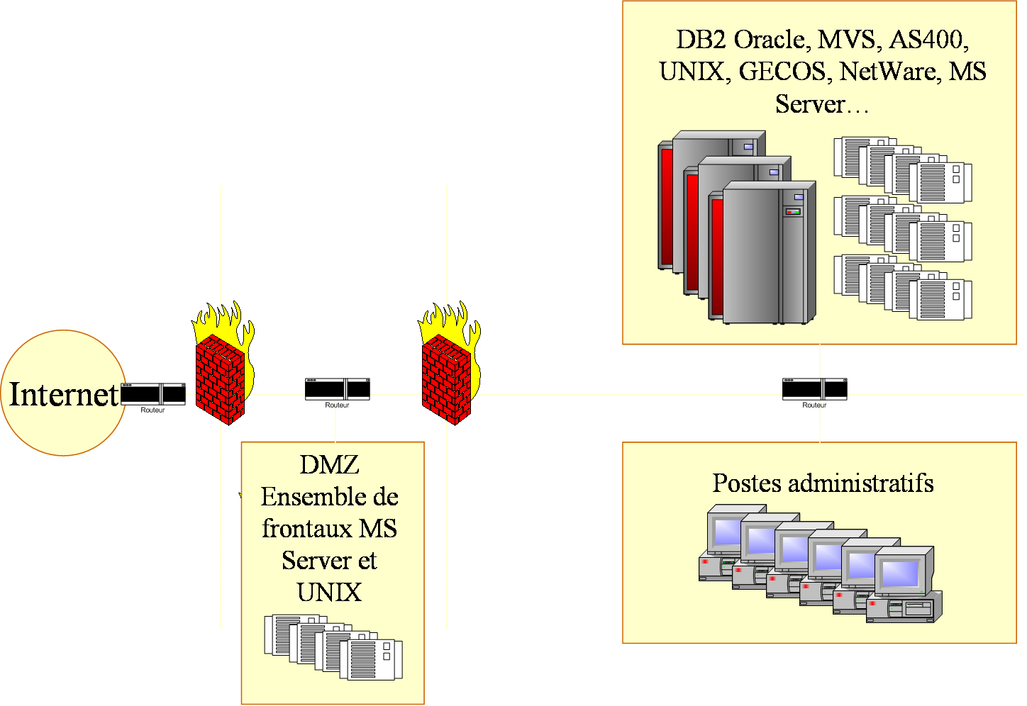 - internes pour permettre le travail des collaborateurs. Ils sont : Intranet, DNS, stockage de données, accès vers l'exterieur, messagerie, applications internes. L'accès aux applications peut se faire grâce à des clients légers ou lourds.