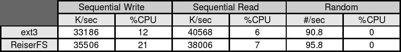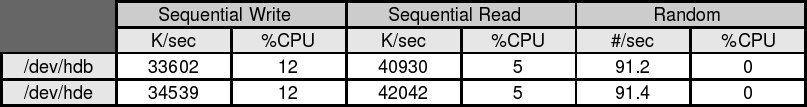 PerformancesComme nous l'avons vu précédemment, dans la section Architecture, le noyau Linux entretien une table d'association entre les unités de stockage logiques, et les unités de stockages présentes physiquement sur le système. Pour chaque lecture ou écriture sur disque, LVM doit donc déterminer l'élément physique à atteindre, en regardant dans cette table. Ces opérations, bien que très fréquentes, ne sont que très peu coûteuses en temps CPU. En effet, la récupération d'un élément dans une table de hachage est une opération de base, et l'une des plus rapides qu'un ordinateur puisse effectuer.Nous avons également vu que LVM stockait des informations dans une zone sur chaque Volume Physique (VGDA). Cette zone étant de très petite taille, et très souvent utilisée, elle est stockée dans le buffer cache. De plus, la partie de cette zone utilisée pour les mappings a de fortes chances d'être stockée à l'intérieur même du cache L1 du processeur. Le coût des opérations d'associations entre les volumes logiques et physiques est donc négligeable. De plus, LVM fournit un système de Striping logiciel, équivalent au RAID0. Ce système peut augmenter les performances de manière significative, car sépare les données à enregistrer en parties qui seront écrites simultanément sur plusieurs disques. Dans ce ças, et dans une situation idéale, la bande bassante est multipliée par le nombre de disques composant le strip-set. La limite des taux de transferts est alors fixée par le bus sur lequel est relié l'unité (IDE, SCSI..) Cependant, pour que le Striping améliore les performances, il faut que la taille fixée des strip (portions de la donnée à écrire) soit inférieure à la taille moyenne des requêtes. En effet, si la taille de la requete est inférieure à la taille des strips, la donnée sera écrite entièrement sur un seul disque, et les autres resteront inactifs. Par contre si la requete est d'une taille plus importante, elle sera séparée en plusieurs morceaux qui seront écrits simultanément sur autant de disques que nécessaire.