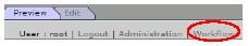 Création du siteLoginLorsque l'on se trouve dans la page d'accueil principale de Jahia (au lancement du serveur), il convient de se loguer pour pouvoir créer notre site. Il suffit pour cela de cliquer sur le bouton "login" de la page principale. Ensuite, on entre "root" comme nom de login et le mot de passe entré lors de l'installation.Si le login est correct, des onglets apparaissent dans la page pour permettre l'édition du site. Onglets de navigation![]()