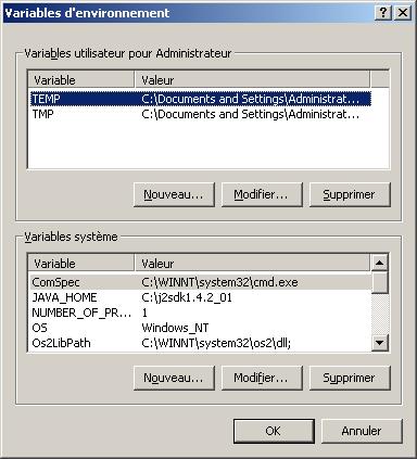 Voyons maintenant comment installer Jahia sur les deux plate formes. Sous WindowsL'installation sous Windows est très simple. Il suffit de lancer l'archive auto-executable téléchargée sur le site.Ensuite, il faut suivre les indications. Une fois l'installation terminée, deux scripts sont ajoutés dans le menu "démarrer". L'un sert pour démarrer le serveur, et l'autre sert à l'arrêter. Avant de lancer le serveur la première fois, il faut être sûr que la variable d'environnement JAVA_HOME est bien initialisée avec le répertoire contenant Java. Le plus simple pour s'assurer de cela est d'aller dans les propriétés système de Windows et de choisir le bouton "variables d'environnement de l'onglet "avancées". Ensuite on peut modifier le chemin d'accès si il n'est pas ou mal défini. ![]() Une fois que cette variable est