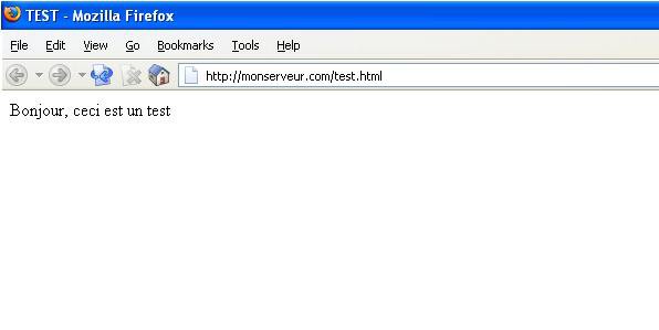 Lorsque vous appelerez l'adresse "http://monserveur.com/test.html", le serveur enverra à votre navigateur les quelques lignes ci-dessus exactement. Celui-ci affichera le résultat ainsi :