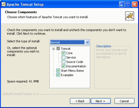 L'installation de la version 5 de Tomcat propose les mêmes options, simplement organisées différemment :