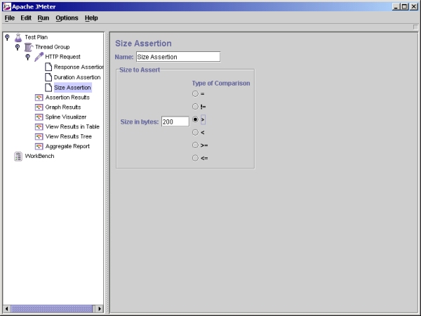 par le champ Size to Assert. Ici, nous récupérons uniquement