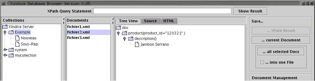 Dans ce contexte l'utilisation de XPath, qui représente les fichiers sous forme d'arborescence, est particulièrement intéressante, car avec Xindice, les requêtes XPath peuvent être effectuées sur des ensembles de Collections (et donc de documents), ce qui augmente notablement son utilité : au lieu de faire des requêtes sur chaque document, on applique directement la requête à la Collection où se trouvent les documents que l'on veut analyser.