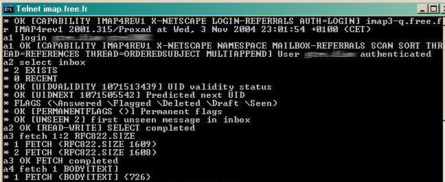 Il est possible d'exécuter un telnet sur un serveur IMAP (port 143), et de passer les commandes soi-même.