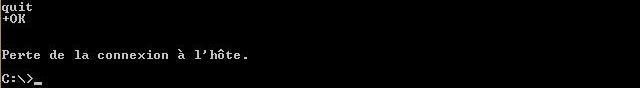 On quitte la connexion avec le serveur, celui-ci acquitte la commande.