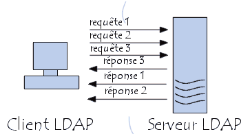De plus, contrairement à la plupart des protocoles, LDAP permet d'effectuer plusieurs requêtes sur le serveur d'annuaire à l'aide d'une seule connexion. en effet, le protocole HTTP ne permet d'effectuer qu'une et une seule requête à chaque connexion au serveur.