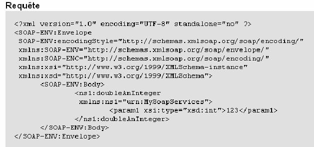 SOAP définit un format pour l'envoi des messages. Les messages SOAP sont structuré en un document XML et comporte :