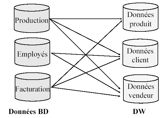 par processus fonctionnels. Le datawarehouse est lui organisé autour