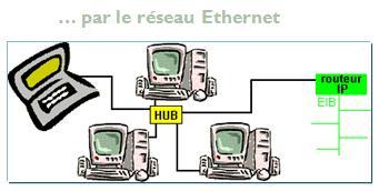 Grâce à un routeur IP , le système EIB/KNX peut être piloté par un utilisateur à l'intérieur d'un réseau informatique.