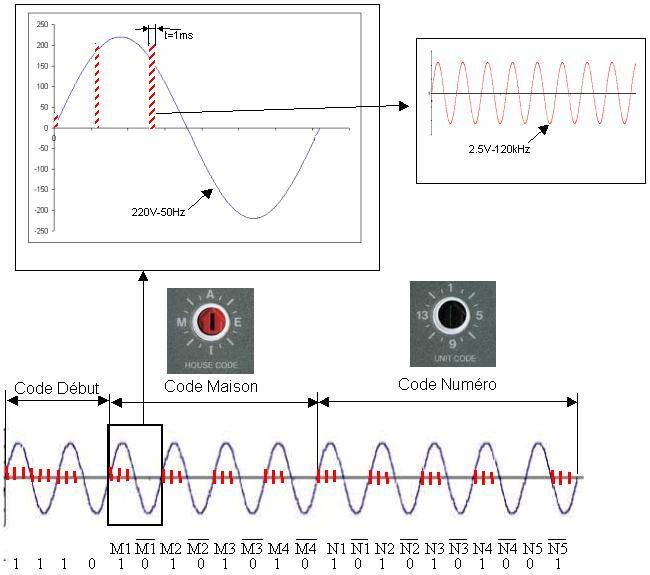 Le principe est d'envoyer un signal basse tension en superposition du signal 220V-50Hz.