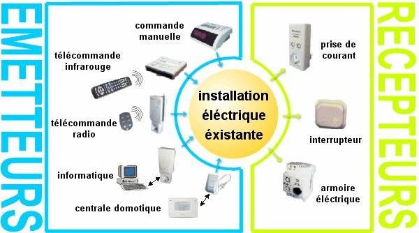 Le principe est d’avoir des émetteurs et des récepteurs connectés au réseau électrique communiquant entre eux comme le montre