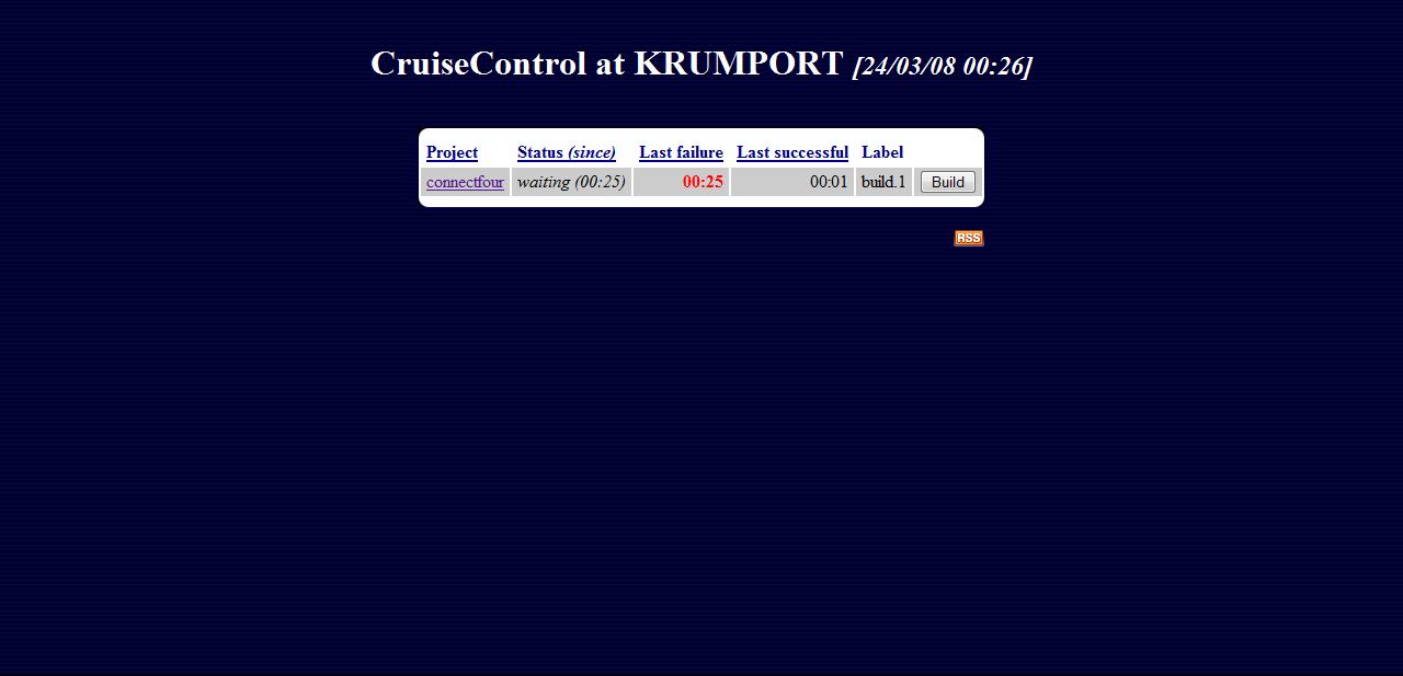 L'interface Web est composé de plusieurs pages ayant différentes utilités. Dans un premier temps, la page d'accueil donne un aperçu de tous les projets qui sont configurés. Elle est composée d’un tableau récapitulatif qui contient la date du dernier build réussi ou a défaut raté, permet de lancer un build manuellement, contient un lien vers la page détaillé de chaque projet, et donne la possibilité de s’enregistrer au flux RSS.