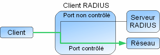 Le serveur RADIUS va authentifier chaque client qui se connecte au réseau sur un port.