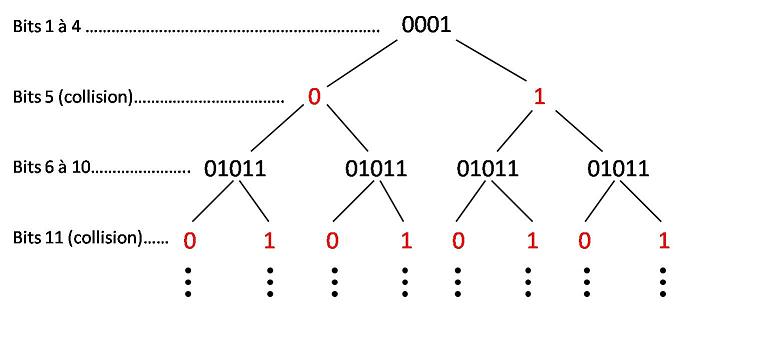 par traiter cette collision. Seuls les 4 premiers bits sont valides. Pour résoudre le problème, nous choisissons indépendamment de