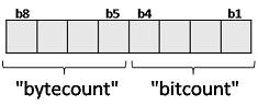 Les quatres bits de poids faible (b1 à b4) représentent le "bitcount", c'est-à-dire le nombre de bits de données additionnels.