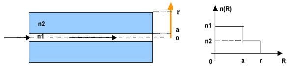 La fibre mono mode a la particularité d'avoir un cœur avec un diamètre beaucoup plus petit que son confrère multi-mode(entre 2 et 10um). C'est par cette faible dimension du cœur que le chemin est imposé. Il n'y en a qu'un, c'est celui du cœur. En théorie, le signal lumineux se déplace donc en ligne droite. En pratique, il se propage au voisinage de l'axe horizontal de la fibre.
