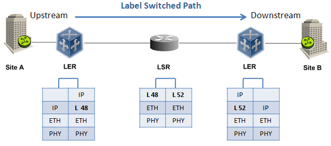 sur ce chemin est faites en analysant un label contenu dans l'entête MPLS qui est ajouté entre la couche 2 (souvent Ethernet) et la couche IP.