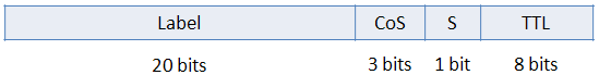 - CoS : Chaque paquet labelisé peut se voir attribuer une Class of service, afin de permettre différentes « discard politics » ou « scheduling politics » pour des paquets ayant le même numéro de label. Cependant la RFC précise que c’est un champ encore experimental.