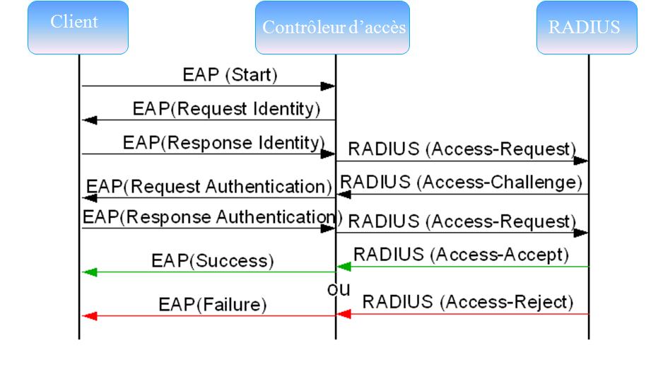 L'authentification repose sur deux protôcoles EAP et RADIUS, qui seront détaillés dans les points suivants.