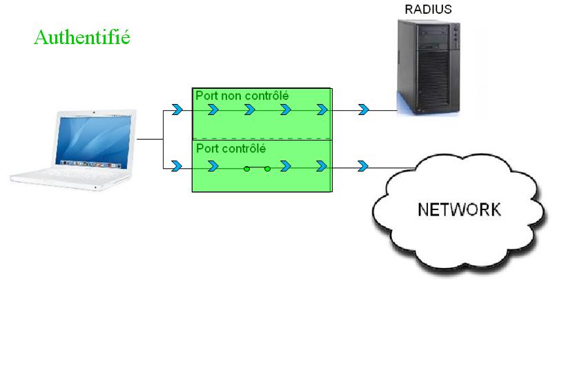 Par défaut ceux-ci ne lui authorise pas l'accès au réseau, ils vont d'abord demander au serveur d'authentification de vérifier l'identité du client.
