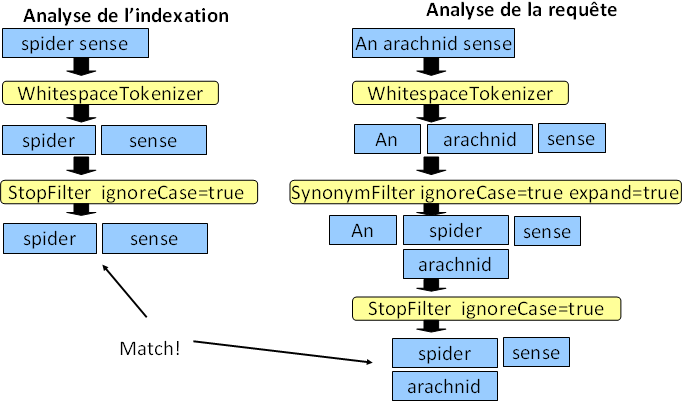 On constate qu'un second filtre (Synonyms) est appliqué uniquement pour la partie requête. En effet, ce filtre
