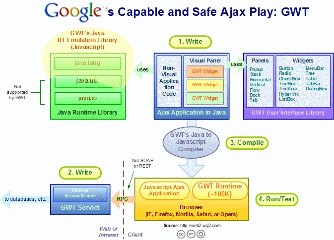 En plus de cette émulation, Google a mis en place un système de sérialisation des données propres à GWT afin d'améliorer le RPC.Le principe client/serveur selon Google