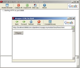 . Ben oui, du Javascript. Car même si GWT vous enlève l'épine du pied en transformant du Java en Javascript, il peut être utile des fois d'insérer du vrai Javascript, comme par exemple si l'on souhaite insérer un autre framework orienté Javascript, comme Dojo. C'est pourquoi il est possible dans une application GWT d'encapsuler du vrai Javascript dans le code, même s'il devient moins portable (la force de GWT !). Inversement, il est possible d'appeler du code Java avec le Javascript, de la même manière que le ferait du JNI.