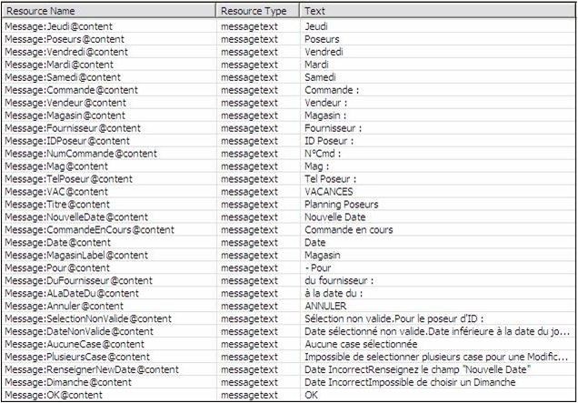 L'ID associé à un texte est déclaré dans la colonne "Ressource Name", cet ID doit être encadré par "Message:" et "@content". Le texte associé à cet ID est lui déclaré dans la colonne "Text".