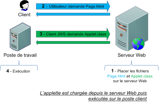 - Le second objectif a été de déléguer l’exécution du code à un client afin de répartir la charge entre le serveur et le client. Il ne faut donc pas les confondre avec les servlettes, qui elles, sont exécutées côté serveur (et ne répondent pas du tout à la même problématique).