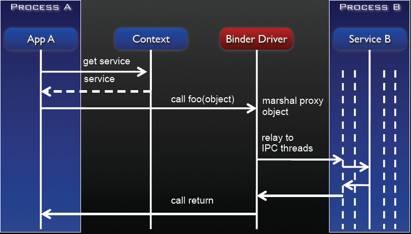 Dans Android chaque application est lancée dans un processus différent. Ces différents processus ont besoin de communiquer ensemble, de partager des données. Cet IPC est possible avec le Binder.
