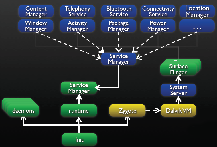 Le System Manager lance ensuite les services d'Android. Ces services une