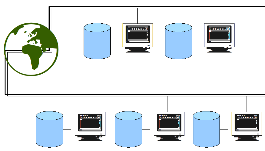 Avec le développement des systèmes et l'augmentation du nombre de terminaux, le mainframe a été remplacé par plusieurs mini-ordinateurs. Chacun d'entre eux étaient relié d'une part à une dizaine de terminaux, et d'autre part aux autres mini-ordinateurs : autorisant ainsi un échange de données, toutefois limité.