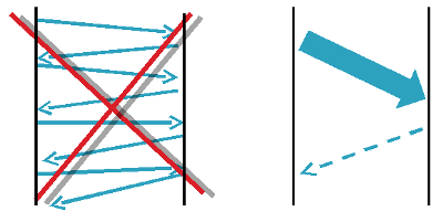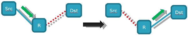 Dans cette exemple, l'émetteur envoit le message à un routeur. La communication entre ce dernier et la destination étant impossible, il stocke le message jusqu'à ce que la connectivité soit rétablie.