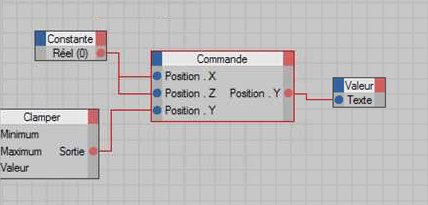 Donc lorsque l'on change la valeur de l'objet Clamper, cela va changer la position Y de l'objet Commande et le texte de l'objet Valeur.