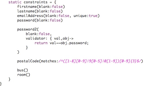 - le champ password2 est identique au champ password. (exemple de contrainte définie par le développeur)
