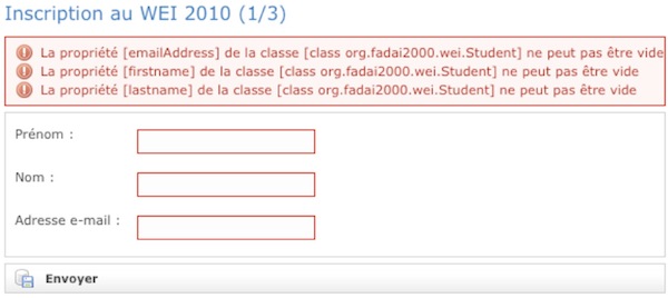 Voici les erreurs que l'ont peut obtenir si le formulaire est mal rempli.