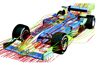 Les mouvements de fluides sont importants dans la simulation. Il peut s'agir du monde exterieur, comme je vous l'ai présenté ci-dessus, mais aussi de certains fluides necessaires au fonctionnement de l'automobile (exemple : essence dans le moteur) ou bien certains flux qui sont générés par la voiture elle-même. Pour avoir une simulation qui soit fidèle, il faut modéliser l'ensemble des règles physiques qui s'appliquent sur une voiture.