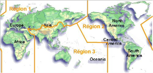 En tant que protocole de communication, les fréquences radio d'échange dépendent des législations en vigueur selon les régions. Le monde est partagée en 3 régions comme sur le schéma ci-dessous.