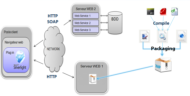 Ainsi, le fichier .XAP comprend le code compilé (C#, IronRuby, VB.NET, etc.) sous forme de DLL ainsi que