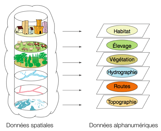 Les données géographiques se composent de deux types d'information organisées de manière hiérarchique: