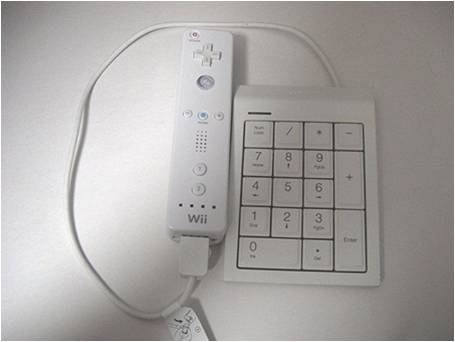 Ce port d’extension est un port I2C 400kHz. Connaissant le type du port, on peut donc ajouter nos propres extensions à la wiimote. Comme par exemple, ce clavier numérique qui a été fait par un japonais. ( Désolé je ne peux malheureusement pas vous dire sont noms, tout était écris en japonais :’( ).