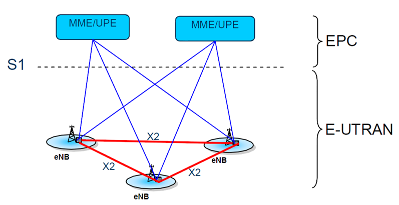 La particularité des eNodeB est qu'elles sont relié à la fois au coeur de réseau ainsi qu'à d'autre relais.